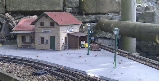 All the stations on the H&DLR are lit, as are most of the non railway buildings. Everything is powered by a Helmsman16v a.c. transformer. This is well suited to LGB, Pola and Busch "G" scale lights. However, not all the lights come from these sources.